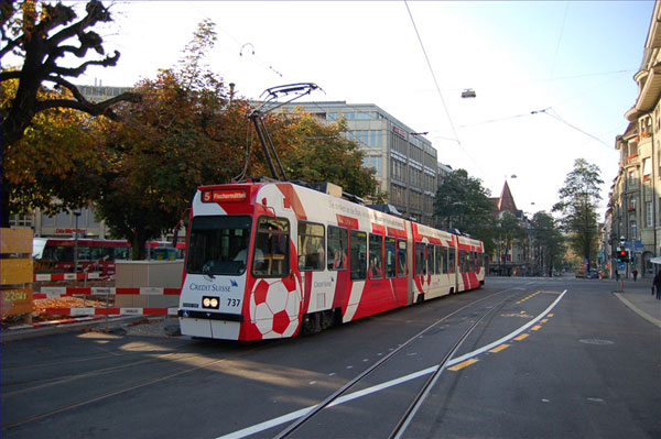 Be 4/8 737 wirbt im Auftrag der CreditSuisse für die Euro 2008 in Bern.