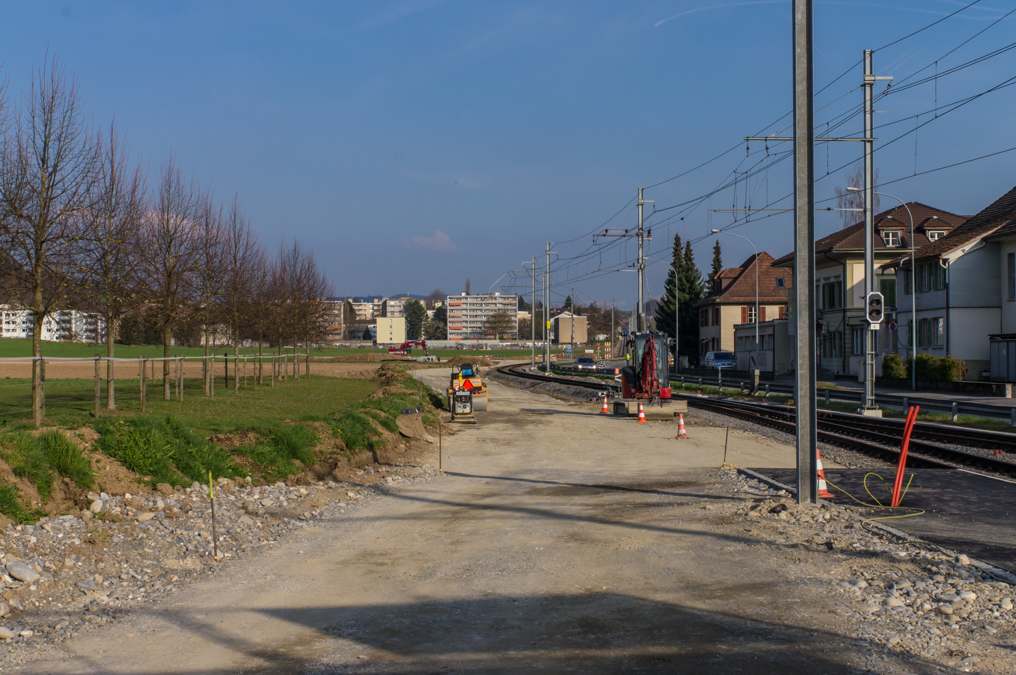Das nächste grosse Bauprojekt wird, die Zustimmung des Volkes und Politik vorausgesetzt, das TramRegionBern von Köniz nach Ostermundigen. Eine Recherche in Rüti b. Ostermundigen zeigt, dass dort die neue Tramschleife wie auch die Tunnelausfahrt bereits abgesteckt sind.